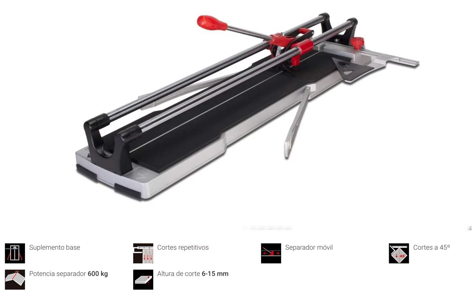 La base de las cortadoras manuales SPEED PLUS se fabrica en aluminio inyectado de gran robustez y gran ligereza, que facilita enormemente el transporte y manipulación de la herramienta. Otra característica de las cortadoras de cerámica SPEED PLUS de RUBI, y que todo profesional sabe apreciar, es la posibilidad de utilizar la gama completa de rodeles intercambiables de 0 6 a 22 mm. que le permitirán sacar el máximo rendimiento y calidad de sus cortes, independientemente del tipo de baldosa cerámica que tenga que trabajar.