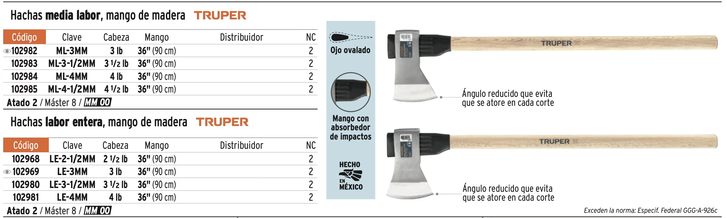 HACHA LABOR ENTERA 2-1/2 LB, MANGO DE MADERA 36', TRUPER,HACHAS NACIONALES