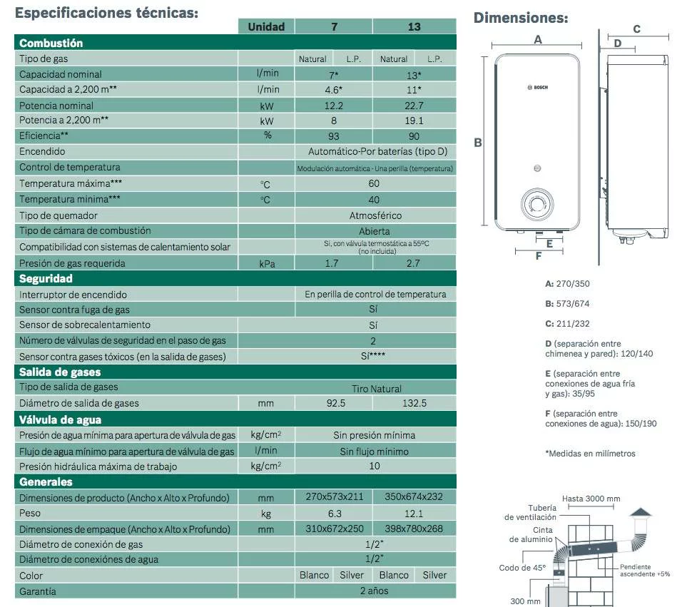CALENTADOR DE PASO BOSCH 11 L/MIN. 2 SERVICIOS