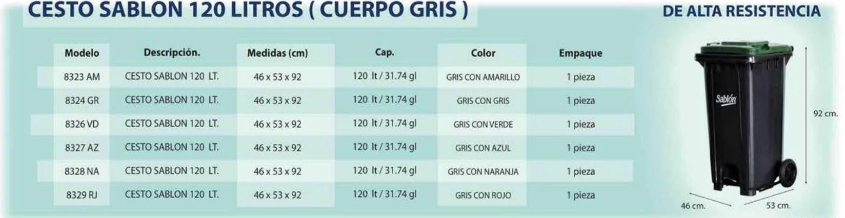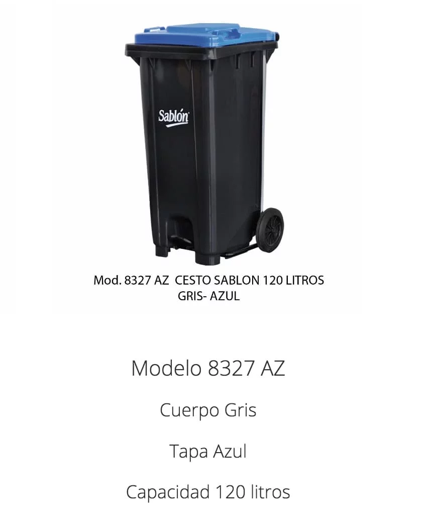 Mod. 8327 AZ CESTO SABLON 120 LITROS GRIS- AZUL