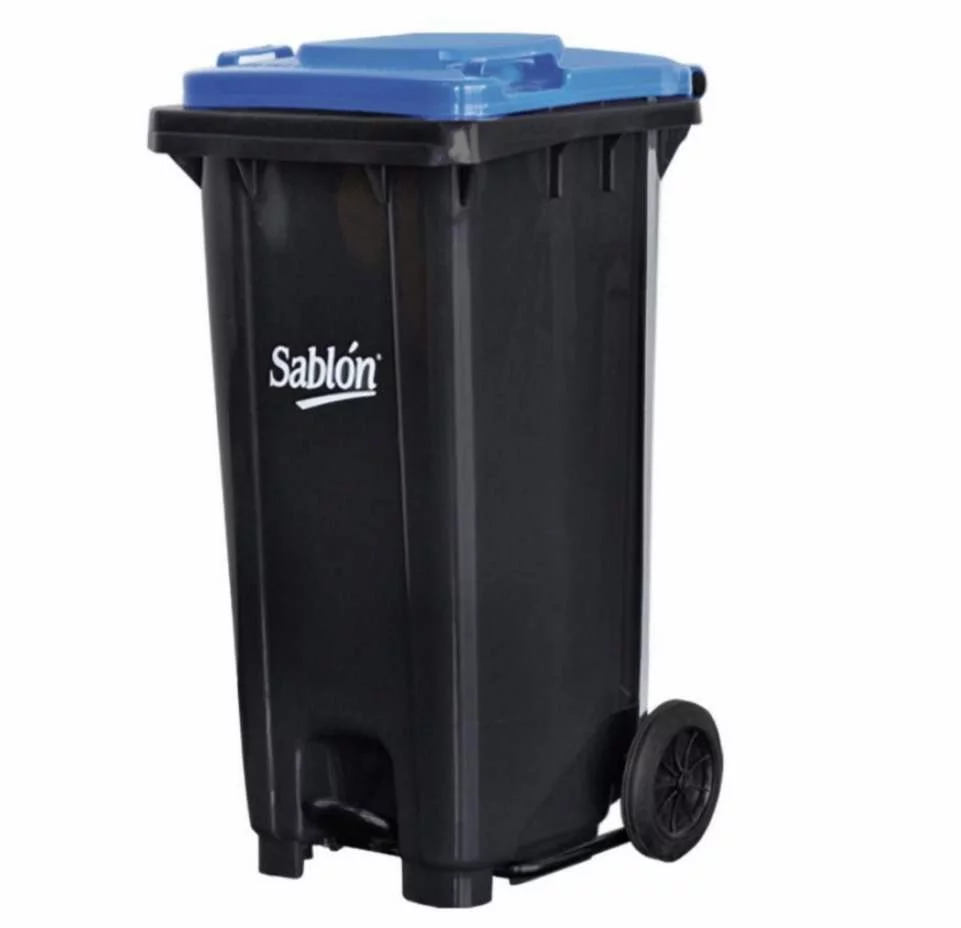 BOTE DE BASURA CON RUEDAS AZUL 120LT CON PEDAL