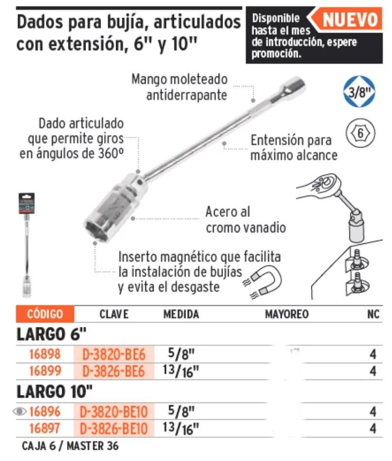 DADO PARA BUJIAS 5/8 ARTICULADO CON EXTENSION 10