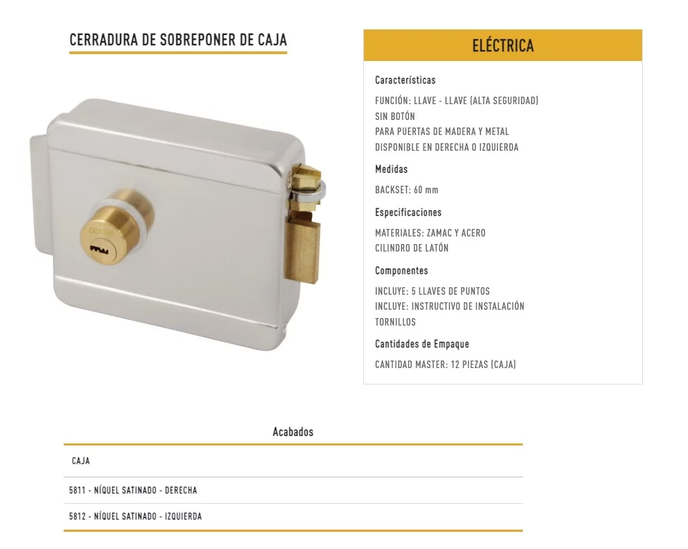 IZQ/DERECH 0.8A 5LLAVES MULTIPUNTO ALTA CILINDRO AJUSTABLE, no incluye transformador