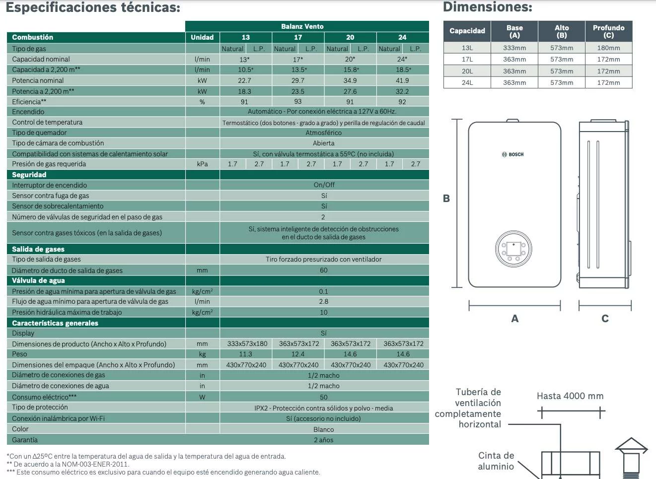 CALENTADOR INSTANTANEO BOSCH 13.5 L/MIN. 3 SERV MODULANTE TIRO FORZADO C/VENT.