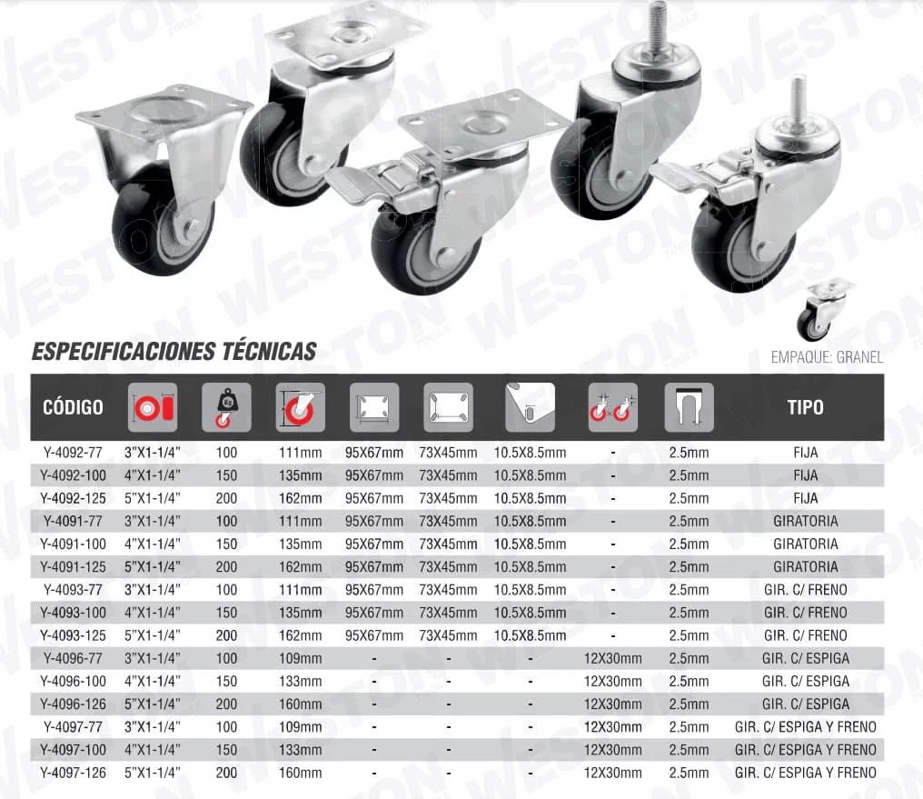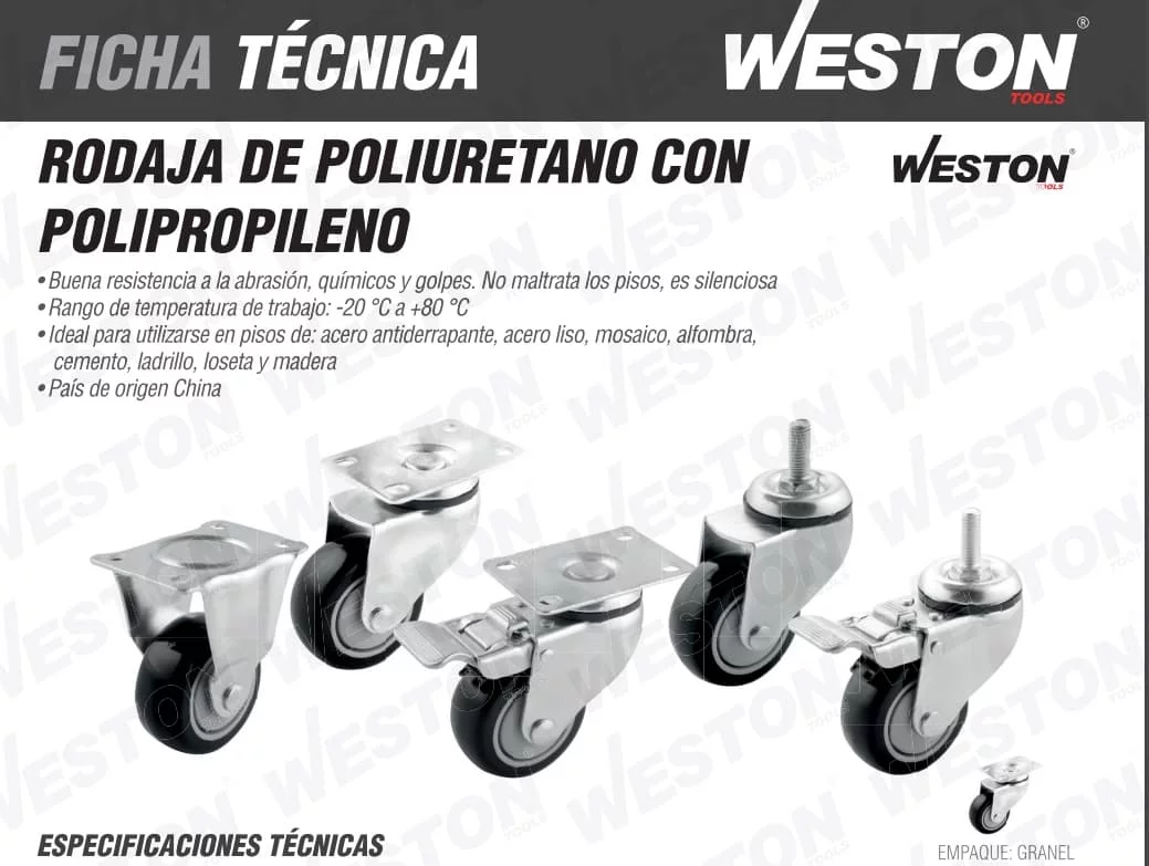 RODAJA POLIURETANO GIRATORIA CON ESPIGA 3X1-1/4''