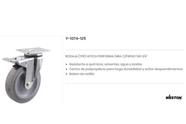RODAJA (TPR) HITECH PERFORMA GIRA. C/FRENO 5X1-1/4'
