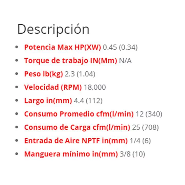 LIJADORA ALTA VEL NEUMATICA .45HP 5 18000RPM 25CFM