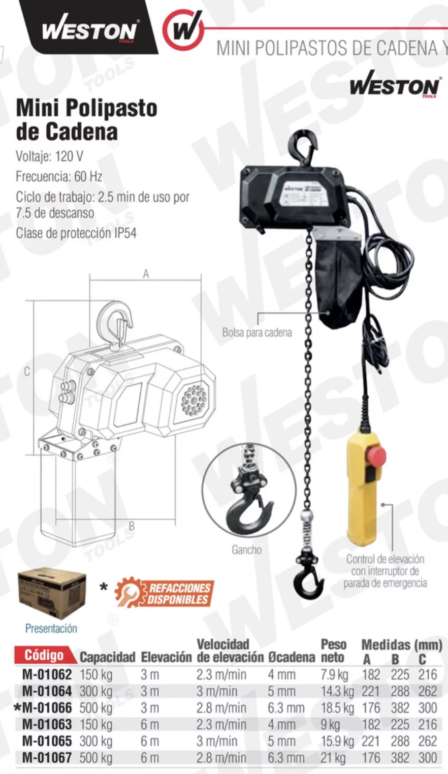 MINI POLIPASTO ELECTRICO CADENA 6M 500KG 110/220V