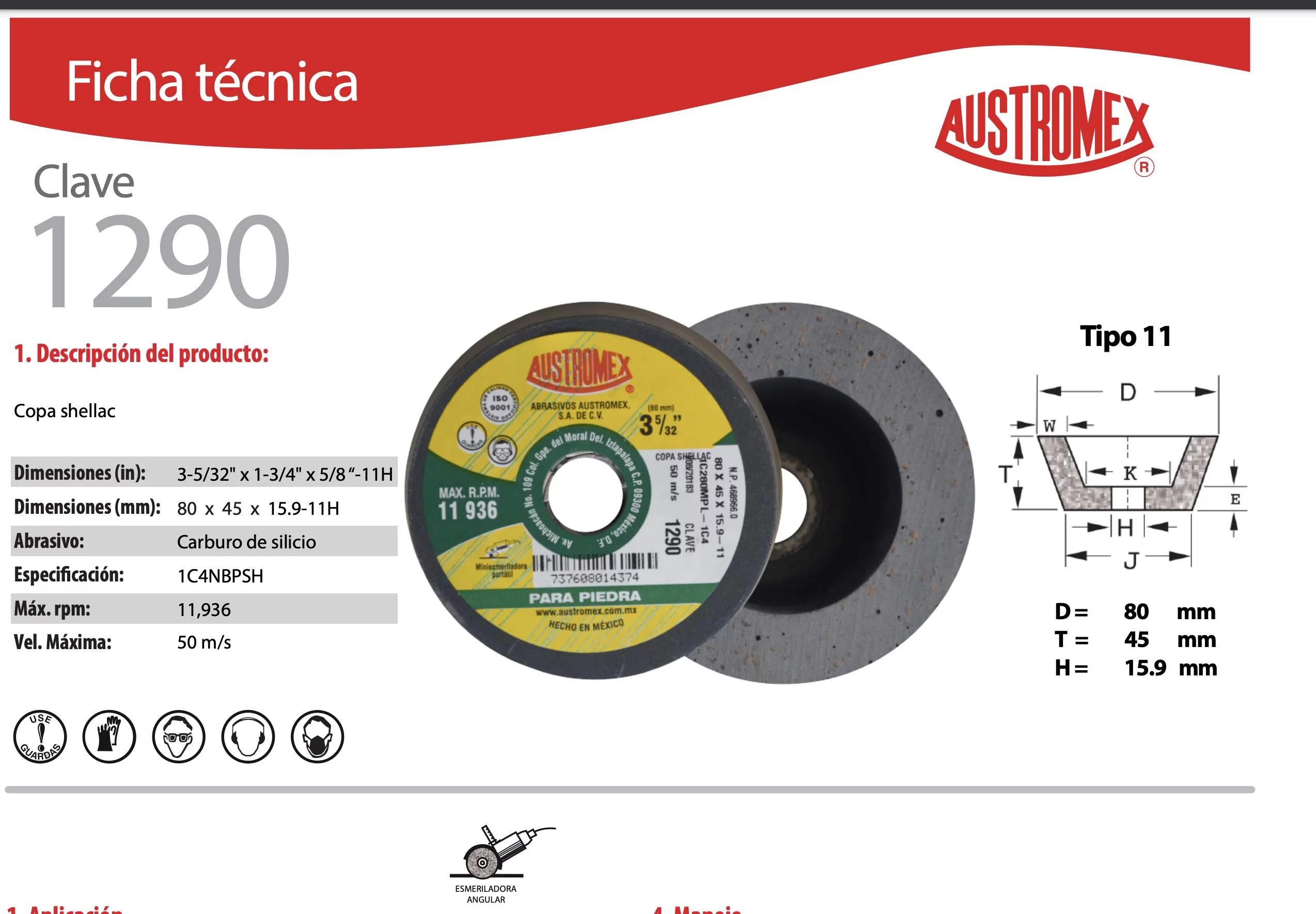Copa Shellac verde 3-5/32 x 1-3/4 x 5/8-11 pulido piedra