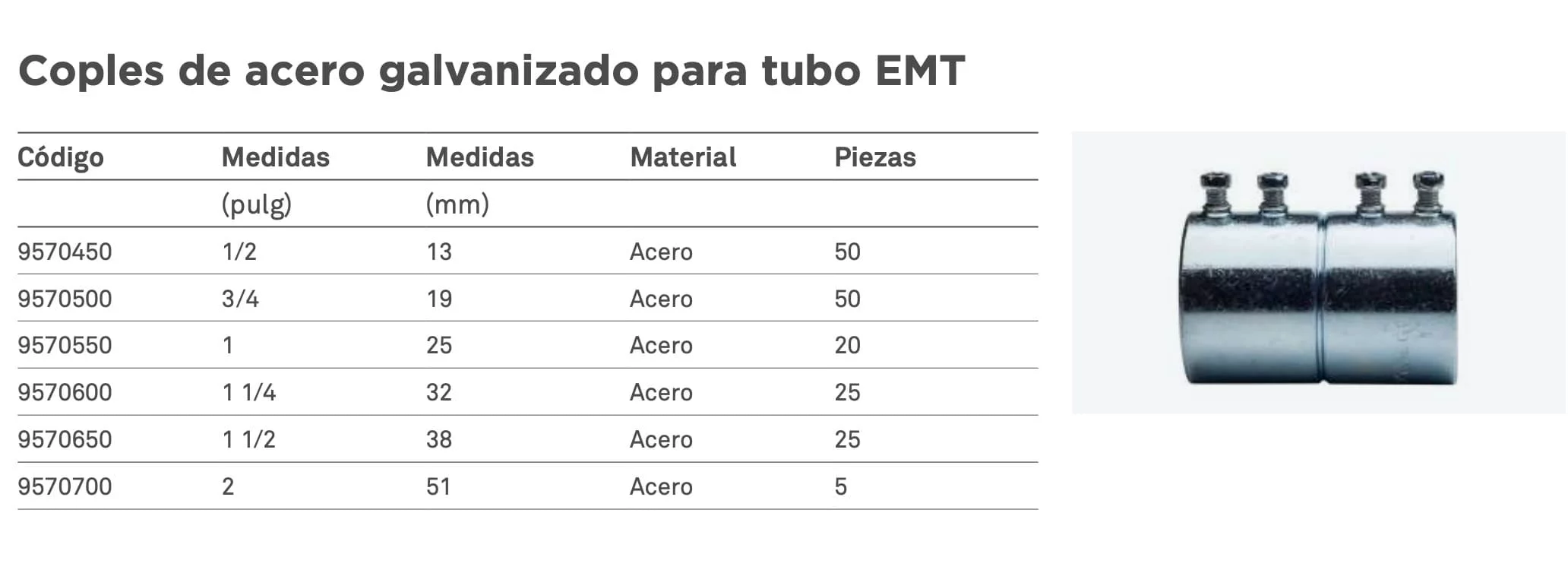 Copies de acero galvanizado para tubo EMT