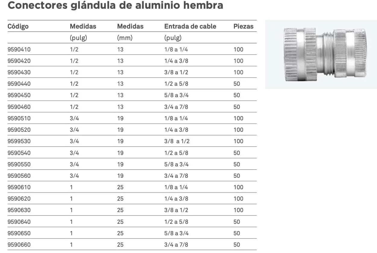 CONECTOR GLANDULA ALUMINIO HEMBRA 1/2 (1/8A1/4)