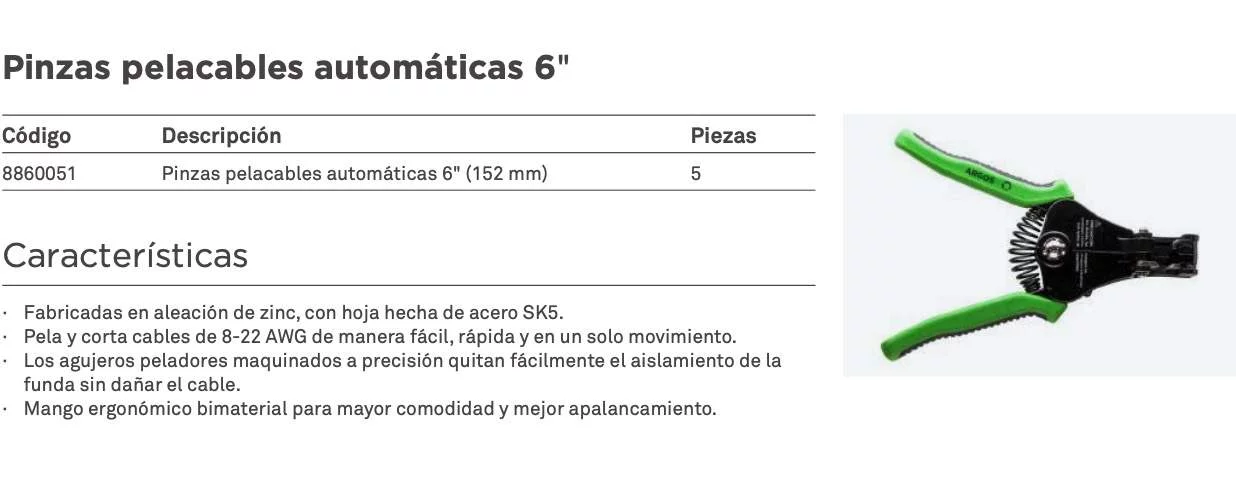 8860051 Pinzas pelacables automáticas 6" (152 mm)