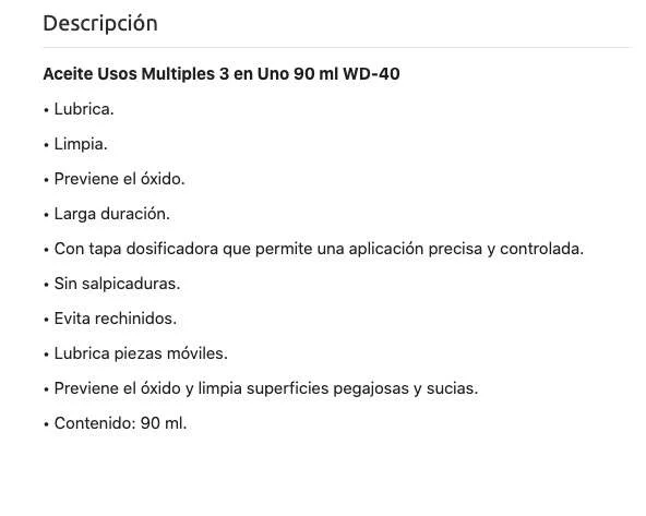 Aceite Usos Múltiples 3 en Uno 90 mi WD-40