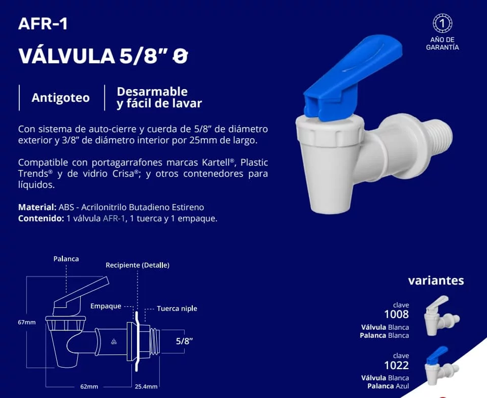 LLAVE VALVULA PLASTICA ESPIGA 5/8 PALANCA ANTIGOTE