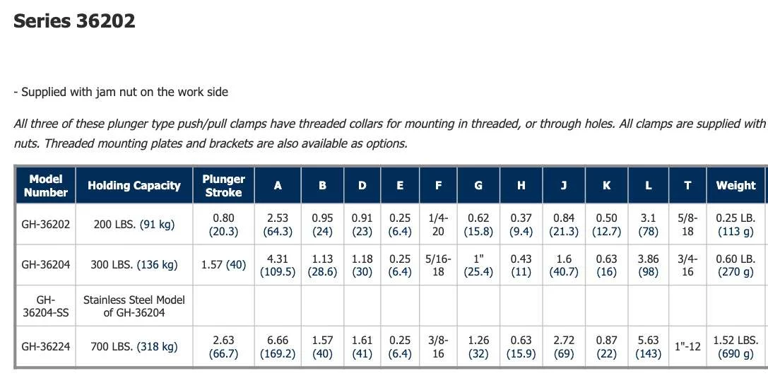 CLAMP ACCION LINEAL EMPUJE 91KG 20MM CARRERA
