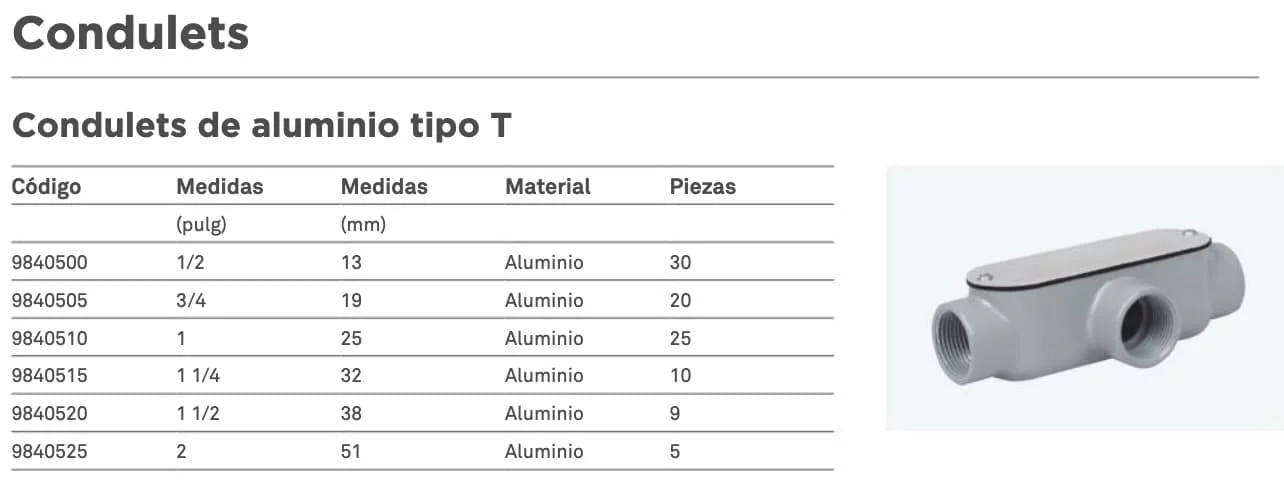 CONDULET TIPO T ALUMINIO 38MM 1-1/2