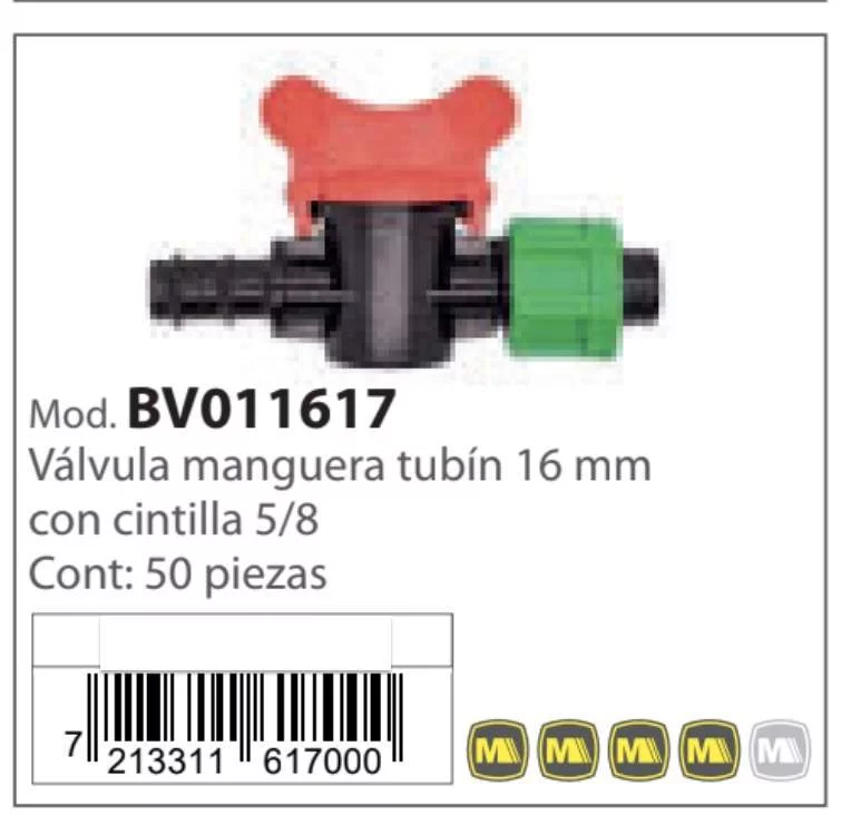 MINI VALVULA MANGUERA TUBIN 16MM CINTILLA 17MM