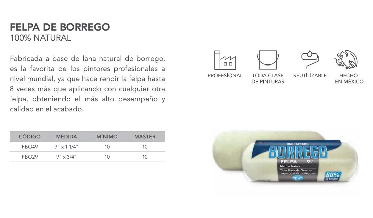 FELPA 9 X3/4 BORREGO 100%NATURAL BYP REPUESTO