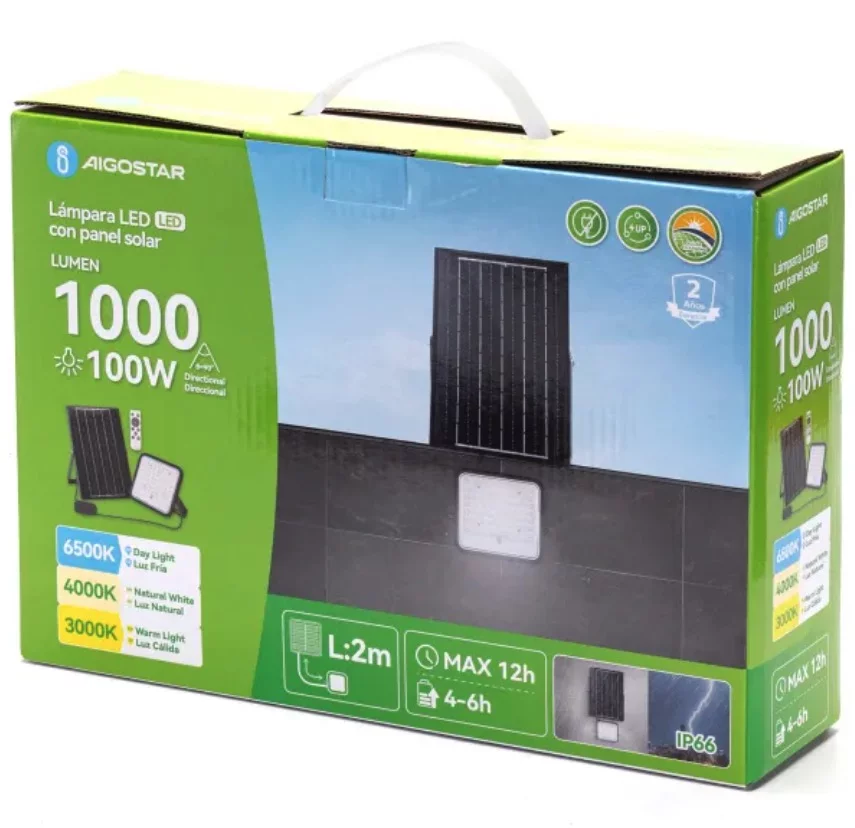 REFLECTOR LED SOLAR 100W 1000LM 3TEMP. C/PANEL Y CABLE