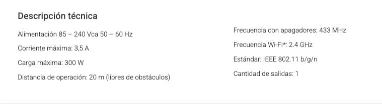 CARGA MAX 300W,TIMMER, WIFI 2,4GHZ, HASTA 20M Y HASTA 10 APAGADORES CINETICOS