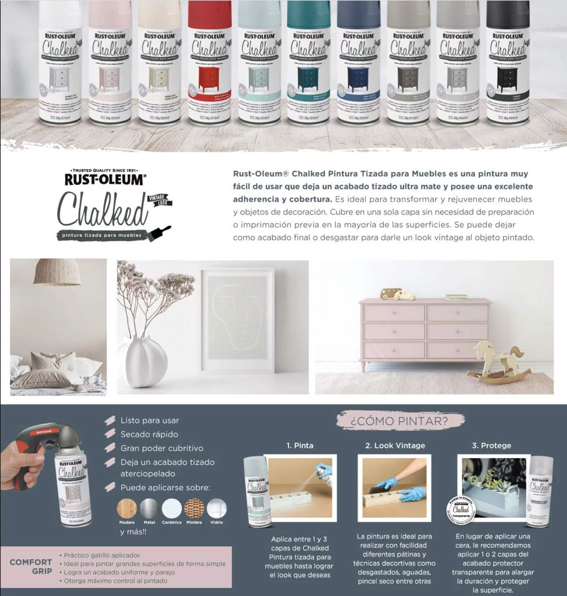 DEJA UN ACABADO TIZADO ULTRA MATE Y POSEE UNA EXCELENTE ADHERENCIA