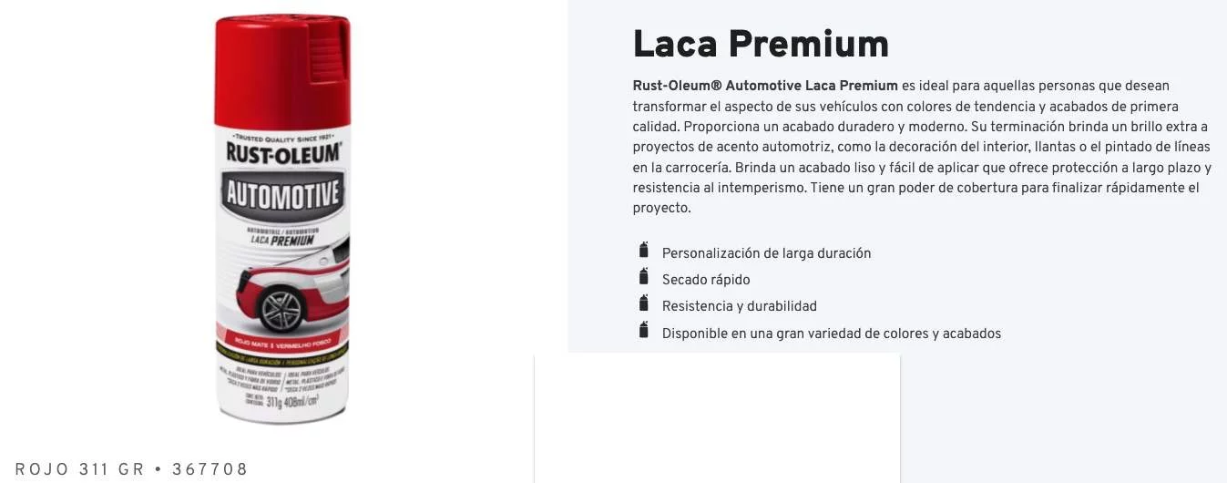 AEROSOL AUTOMOTRIZ LACA PREMIUM MATE ROJO