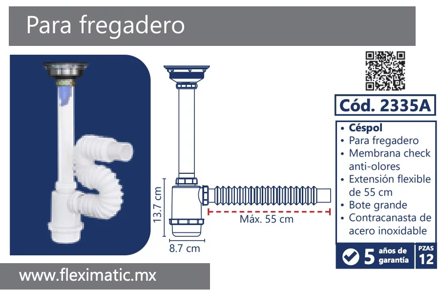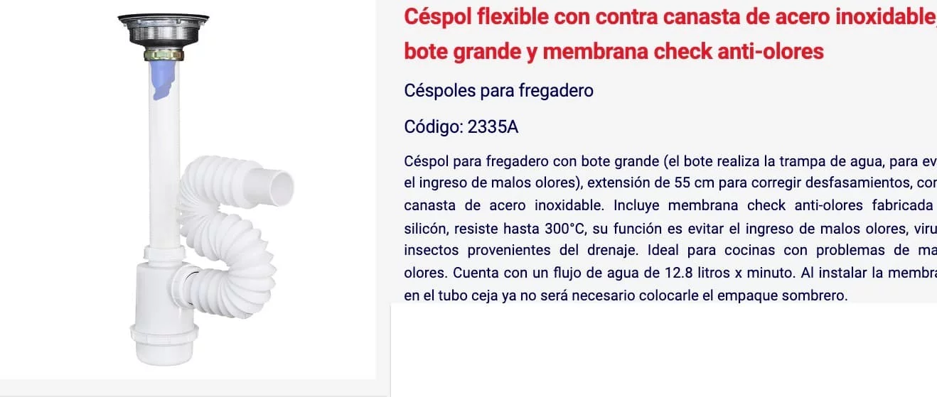 CESPOL FLEXIBLE PARA FREGADERO CON CANASTA