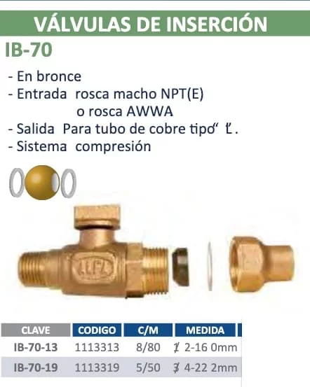 LLAVE INSERCION BOLA PARA COBRE 3/4 COMPRESION-NPT