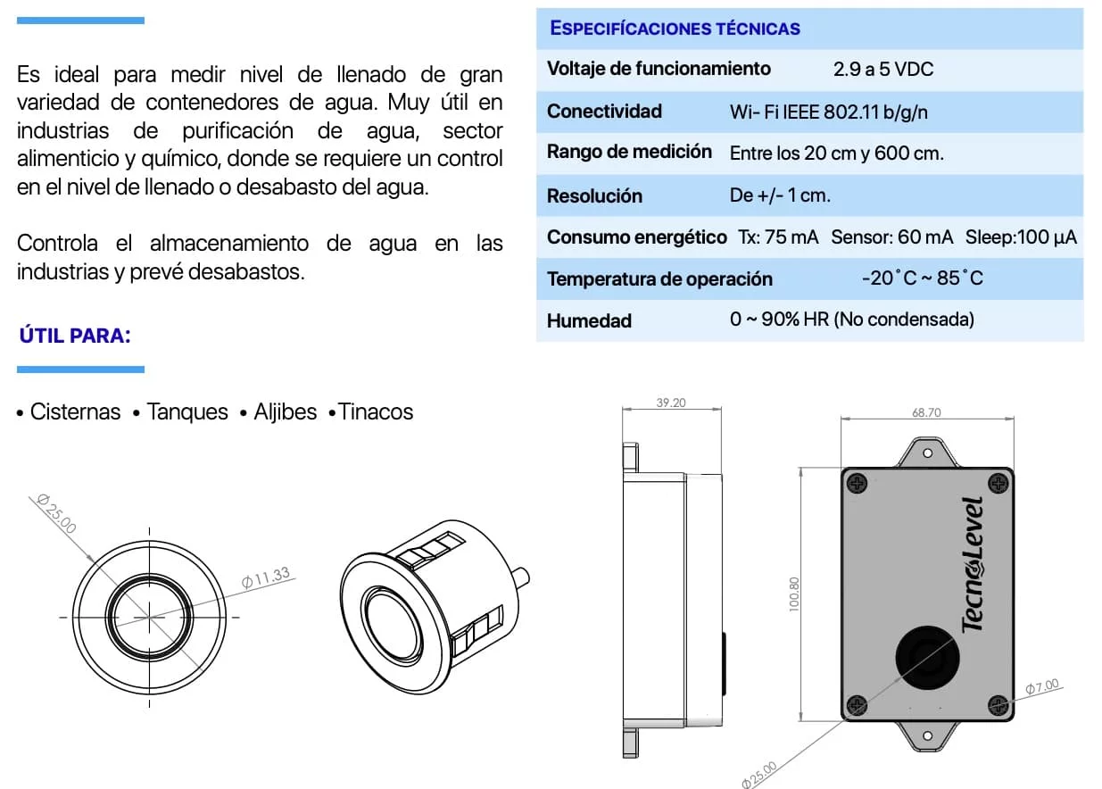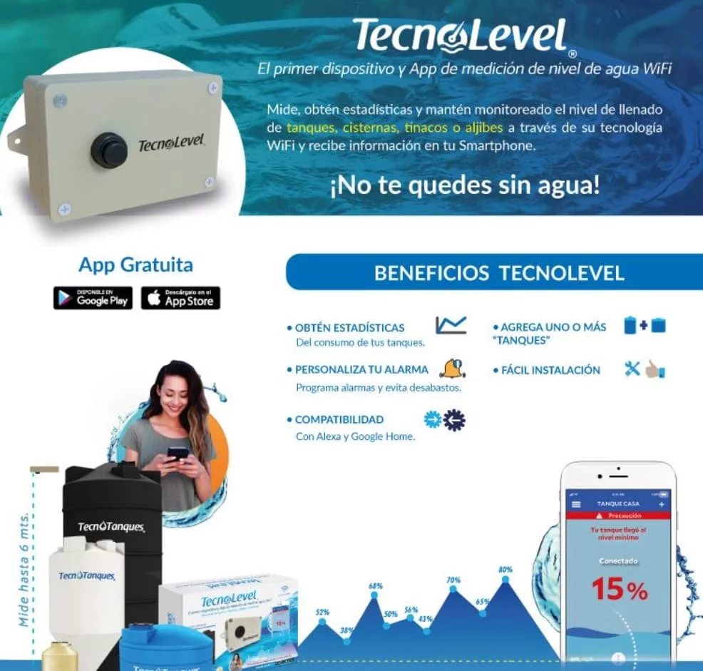 MEDIDOR DE NIVEL DE AGUA WIFI TECNOLEVEL ALEXA HO