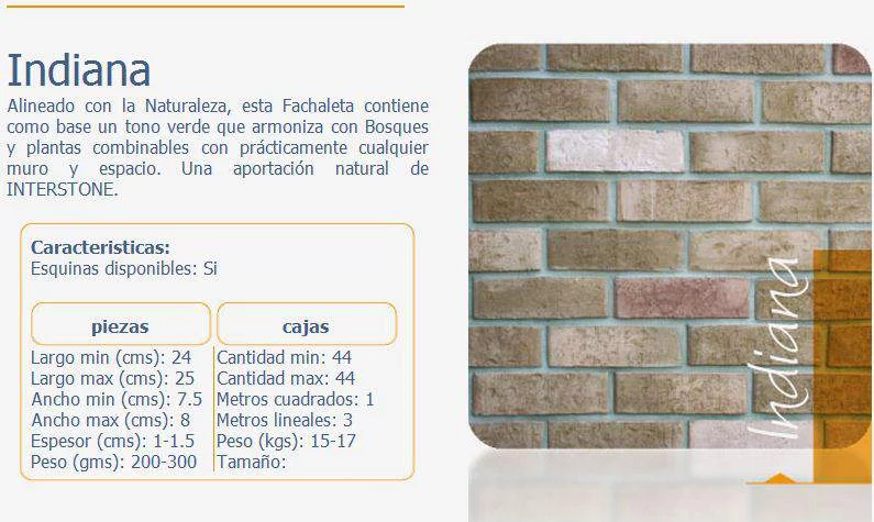 CJ. FACHALETA LADRILLO INDIANA 1M2 15-18KG.