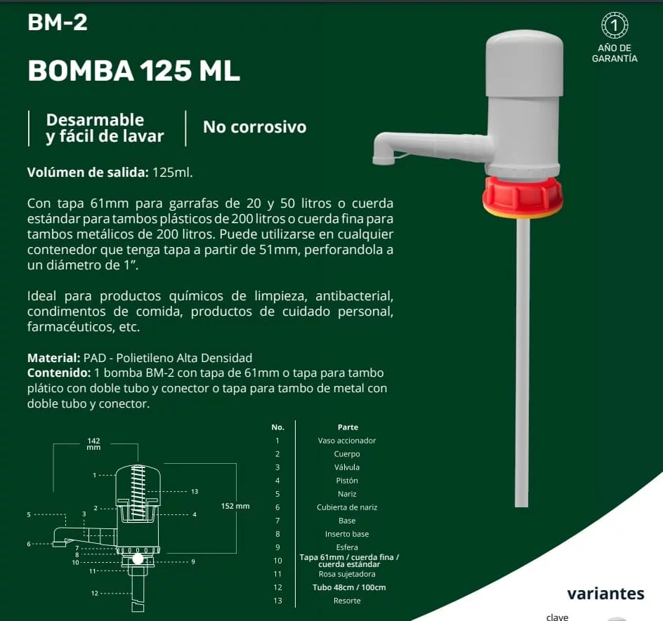 BOMBA PARA TAMBOS PLASTICOS ROSCA STD DOSIFICA 125 DISPENSADOR