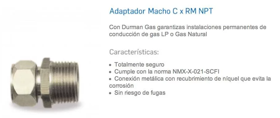 ADAPTADOR MACHO 1/2 (20)X1/2 RM NPT GAS 616438