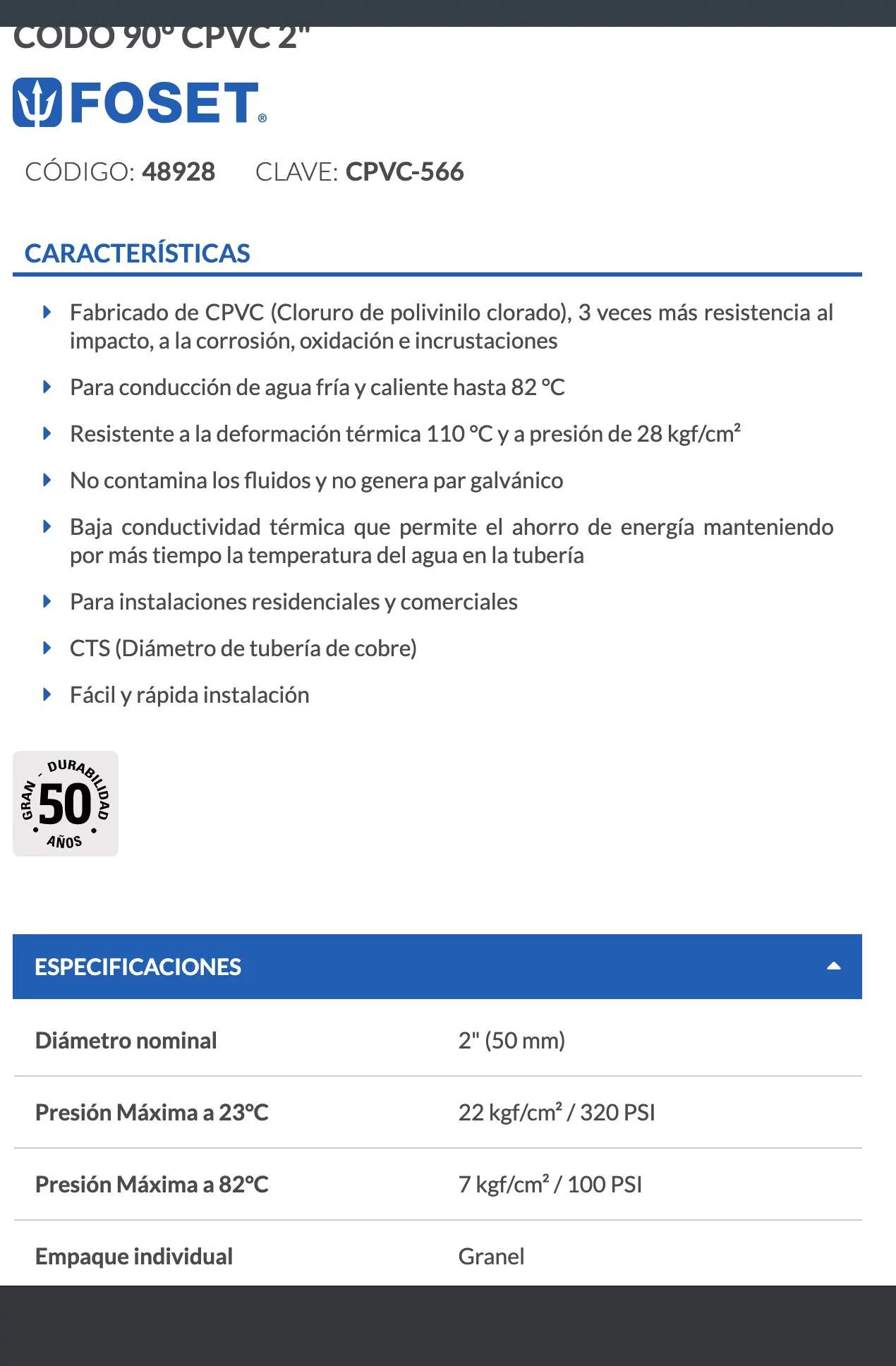 - Presión máxima a 23 °C: 2 206 kPa / 320 PSI -Presión máxima a 82 °C: 690 kPa /100 PSI