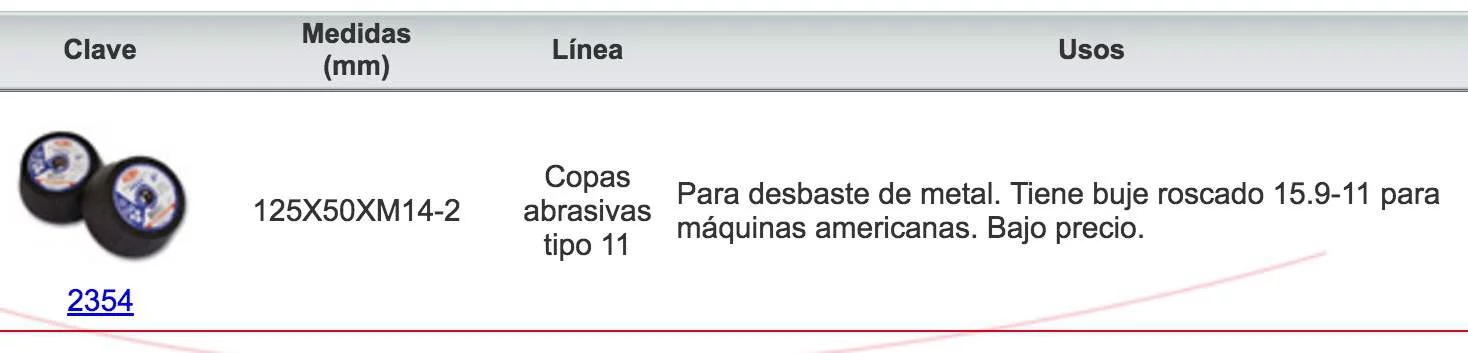 Copa abrasiva 5 x 2 x M14-2 desbaste metal y biselado