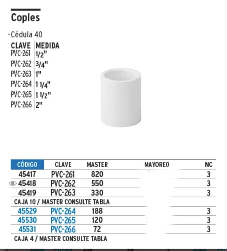 COPLE PVC HIDRAULICO CEMENTAR 1-1/2