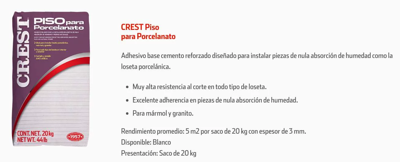 CREST PISO PORCELANATO 20KG.