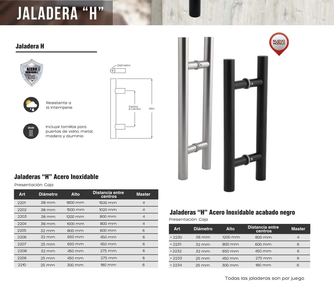 JALADERA TIPO H ACERO INOX 120CM X 38MM
