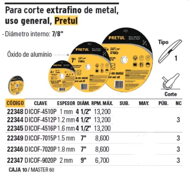 DISCO PARA CORTE FINO DE METAL 9 X2MM