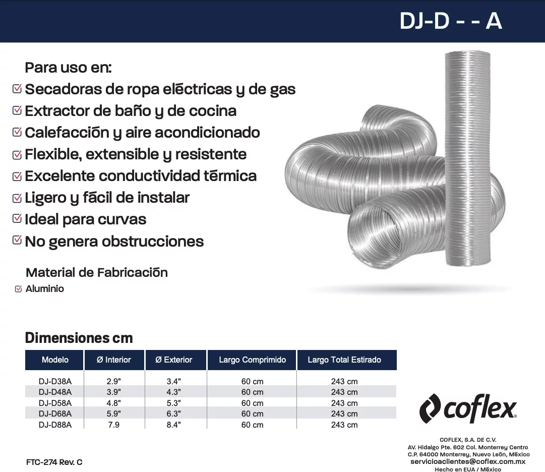 DUCTO FLEXIBLE ALUMINIO 4 2.4M 60CM-243CM