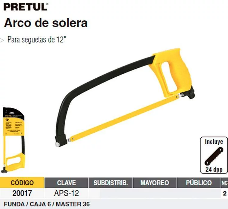 ARCO DE SOLERA PARA SEGUETA 12 PRETUL APS-12 PRET