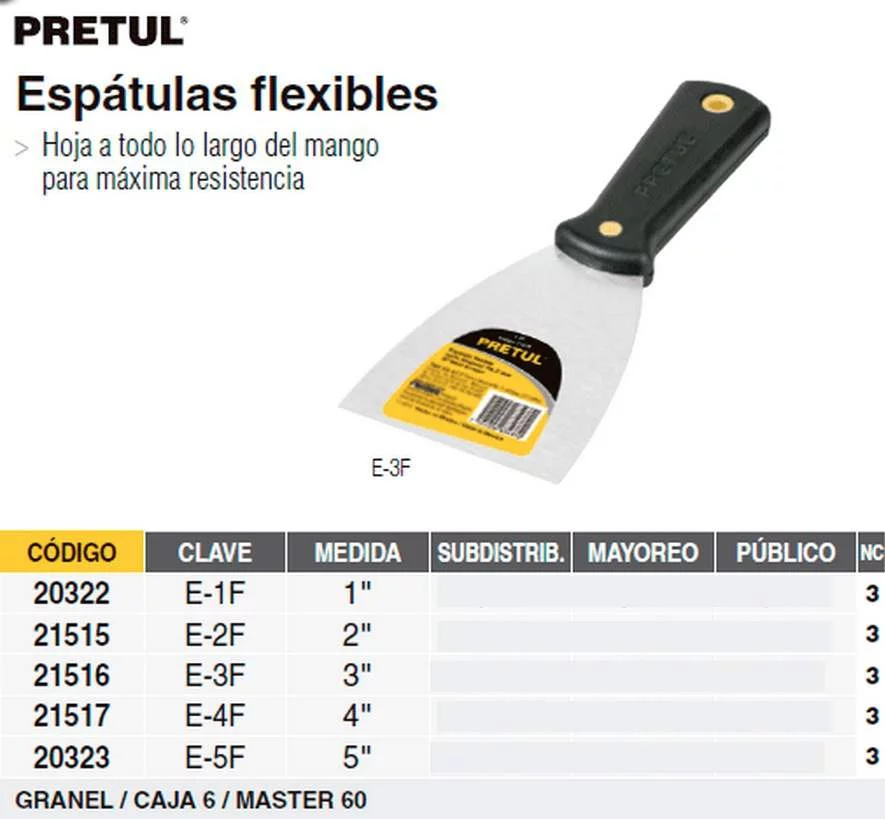 ESPATULA FLEXIBLE MANGO PLASTICO 5 PRETUL E-5F PR