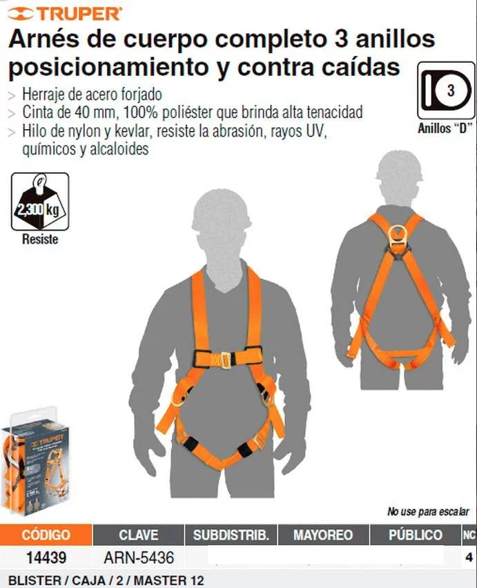 Arnés de cuerpo completo 3 anillos posicionamiento y contra caídas