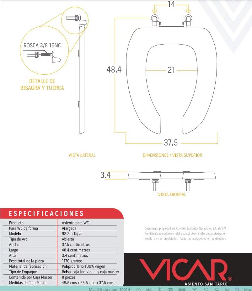 ASIENTO ALARGADO EXTRA SOLIDO M-98 HUESO MARFIL
